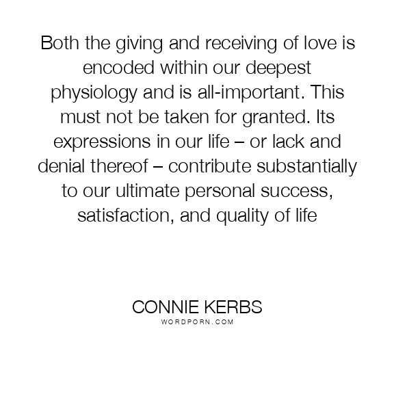 Both the giving and receiving of love is encoded within our deepest physiology and is all-important. This must not be taken for granted. Its expressions in our life – or lack and denial thereof – contribute substantially to our ultimate personal success, satisfaction, and quality of life