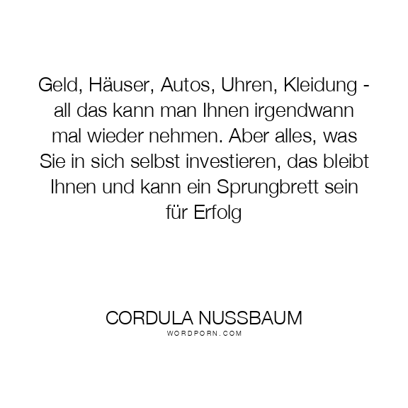 Geld, Häuser, Autos, Uhren, Kleidung - all das kann man Ihnen irgendwann mal wieder nehmen. Aber alles, was Sie in sich selbst investieren, das bleibt Ihnen und kann ein Sprungbrett sein für Erfolg