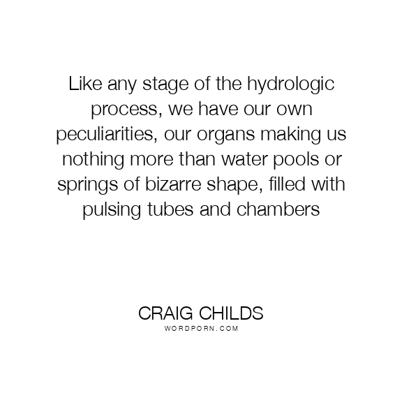 Like any stage of the hydrologic process, we have our own peculiarities, our organs making us nothing more than water pools or springs of bizarre shape, filled with pulsing tubes and chambers
