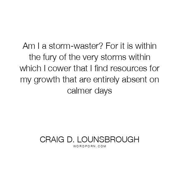 Am I a storm-waster? For it is within the fury of the very storms within which I cower that I find resources for my growth that are entirely absent on calmer days