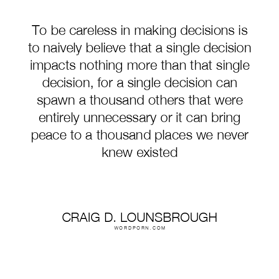 To be careless in making decisions is to naively believe that a single decision impacts nothing more than that single decision, for a single decision can spawn a thousand others that were entirely unnecessary or it can bring peace to a thousand places we never knew existed