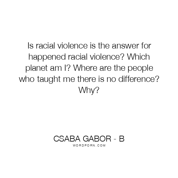 Is racial violence is the answer for happened racial violence? Which planet am I? Where are the people who taught me there is no difference? Why?