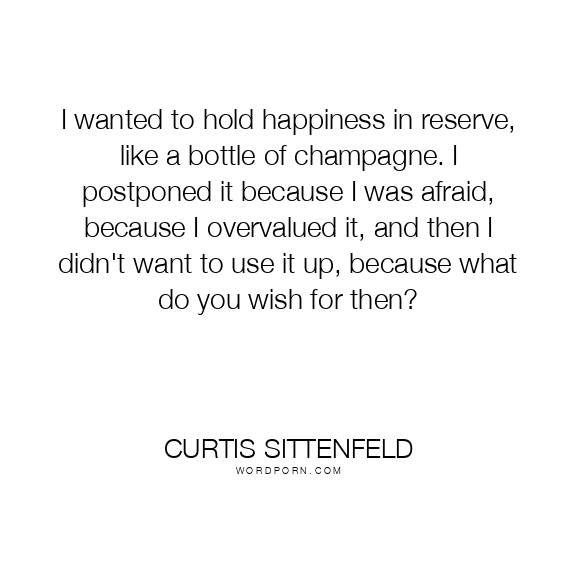 I wanted to hold happiness in reserve, like a bottle of champagne. I postponed it because I was afraid, because I overvalued it, and then I didn't want to use it up, because what do you wish for then?