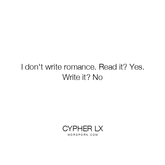 Copy Image I don't write romance. Read it? Yes. Write it? No