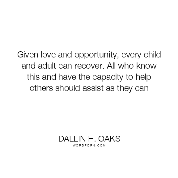 Given love and opportunity, every child and adult can recover. All who know this and have the capacity to help others should assist as they can