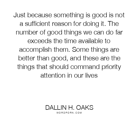Just because something is good is not a sufficient reason for doing it. The number of good things we can do far exceeds the time available to accomplish them. Some things are better than good, and these are the things that should command priority attention in our lives