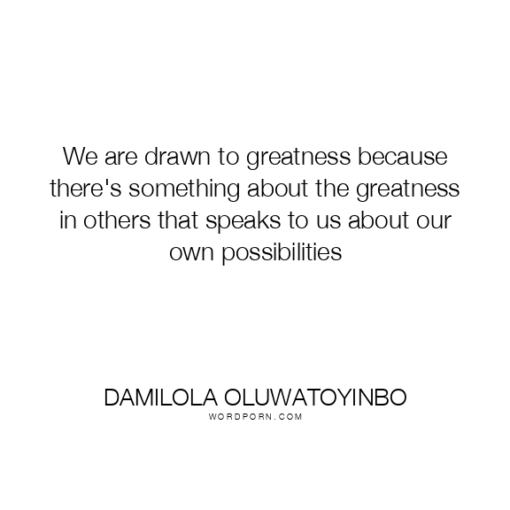 We are drawn to greatness because there's something about the greatness in others that speaks to us about our own possibilities