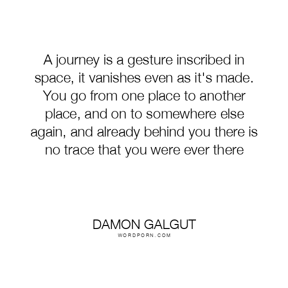 A journey is a gesture inscribed in space, it vanishes even as it's made. You go from one place to another place, and on to somewhere else again, and already behind you there is no trace that you were ever there