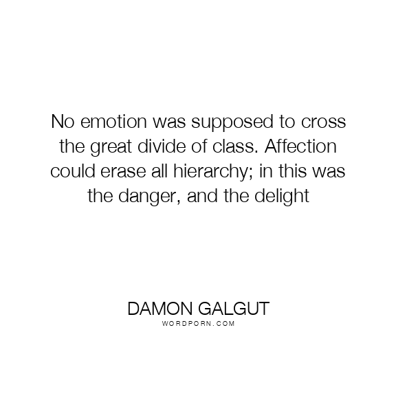 No emotion was supposed to cross the great divide of class. Affection could erase all hierarchy; in this was the danger, and the delight