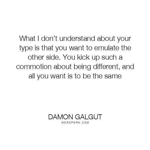 What I don’t understand about your type is that you want to emulate the other side. You kick up such a commotion about being different, and all you want is to be the same