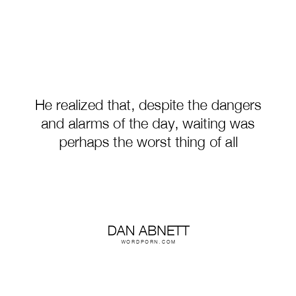 Dan Abnett quote. He realized that, despite the dangers and alarms of the day, waiting was perhaps the worst thing of all