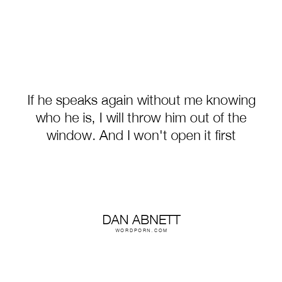 Dan Abnett quote. If he speaks again without me knowing who he is, I will throw him out of the window. And I won't open it first