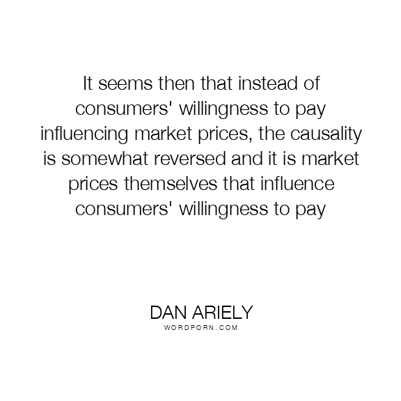 It seems then that instead of consumers' willingness to pay influencing market prices, the causality is somewhat reversed and it is market prices themselves that influence consumers' willingness to pay