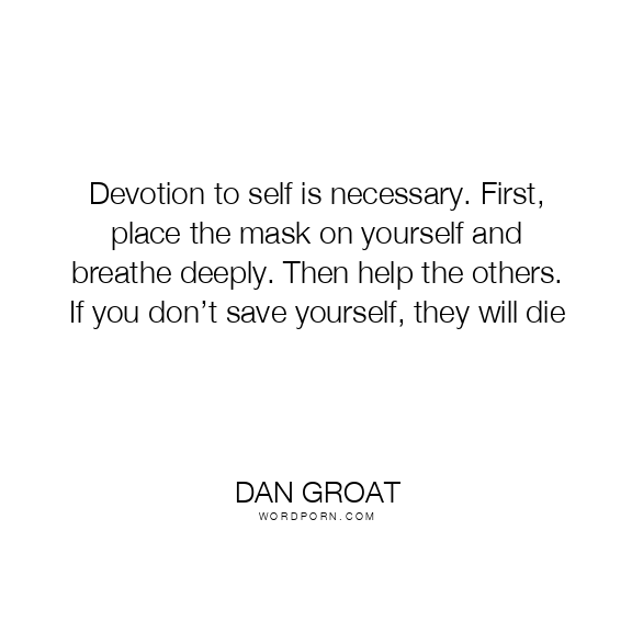 Devotion to self is necessary. First, place the mask on yourself and breathe deeply. Then help the others. If you don’t save yourself, they will die