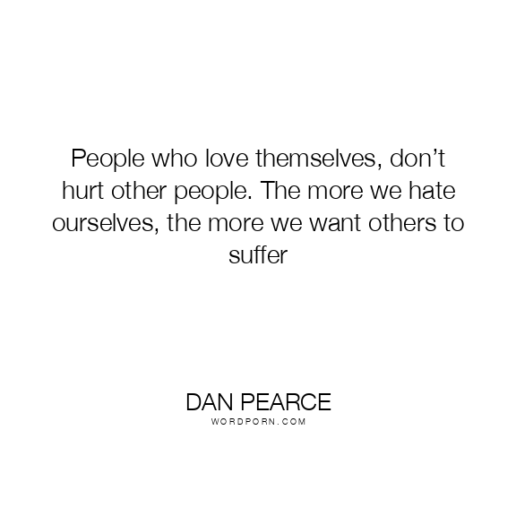 People who love themselves, don’t hurt other people. The more we hate ourselves, the more we want others to suffer