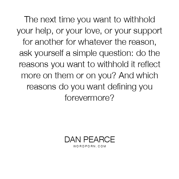 The next time you want to withhold your help, or your love, or your support for another for whatever the reason, ask yourself a simple question: do the reasons you want to withhold it reflect more on them or on you? And which reasons do you want defining you forevermore?