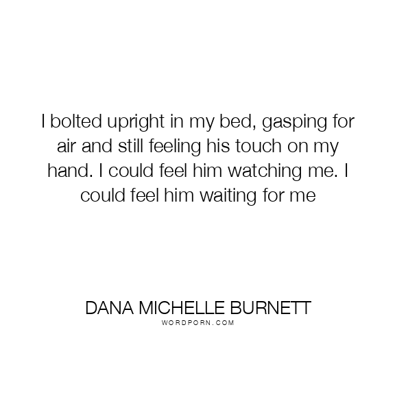 I bolted upright in my bed, gasping for air and still feeling his touch on my hand. I could feel him watching me. I could feel him waiting for me