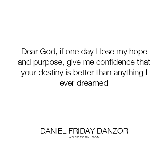 Dear God, if one day I lose my hope and purpose, give me confidence that your destiny is better than anything I ever dreamed