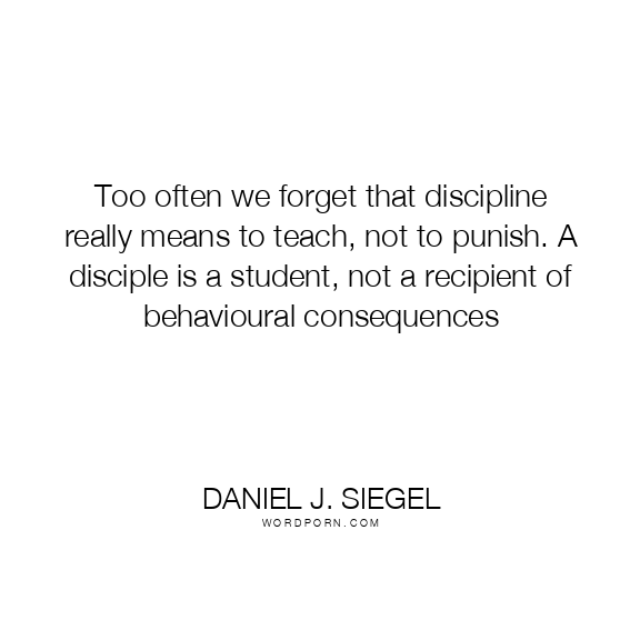 Too often we forget that discipline really means to teach, not to punish. A disciple is a student, not a recipient of behavioural consequences