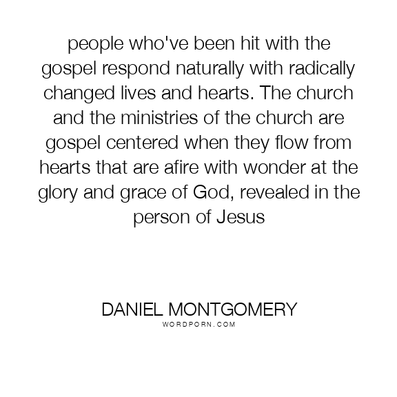 people who've been hit with the gospel respond naturally with radically changed lives and hearts. The church and the ministries of the church are gospel centered when they flow from hearts that are afire with wonder at the glory and grace of God, revealed in the person of Jesus
