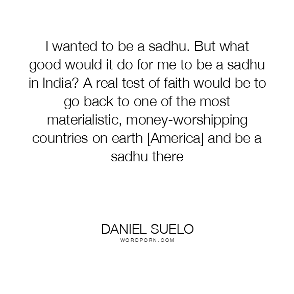 I wanted to be a sadhu. But what good would it do for me to be a sadhu in India? A real test of faith would be to go back to one of the most materialistic, money-worshipping countries on earth [America] and be a sadhu there