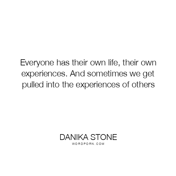Everyone has their own life, their own experiences. And sometimes we get pulled into the experiences of others
