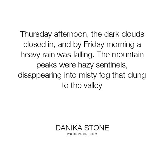 Thursday afternoon, the dark clouds closed in, and by Friday morning a heavy rain was falling. The mountain peaks were hazy sentinels, disappearing into misty fog that clung to the valley