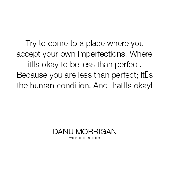 Try to come to a place where you accept your own imperfections. Where it‟s okay to be less than perfect. Because you are less than perfect; it‟s the human condition. And that‟s okay!