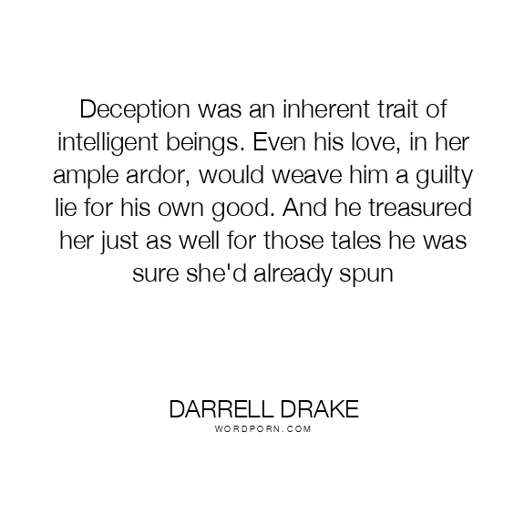 Deception was an inherent trait of intelligent beings. Even his love, in her ample ardor, would weave him a guilty lie for his own good. And he treasured her just as well for those tales he was sure she'd already spun