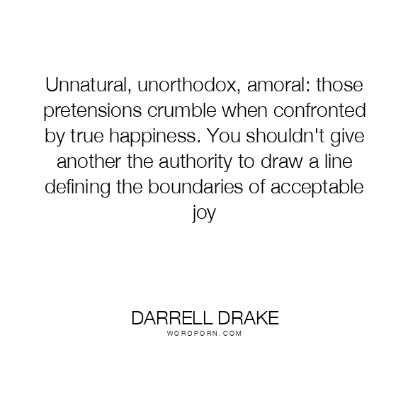Unnatural, unorthodox, amoral: those pretensions crumble when confronted by true happiness. You shouldn't give another the authority to draw a line defining the boundaries of acceptable joy