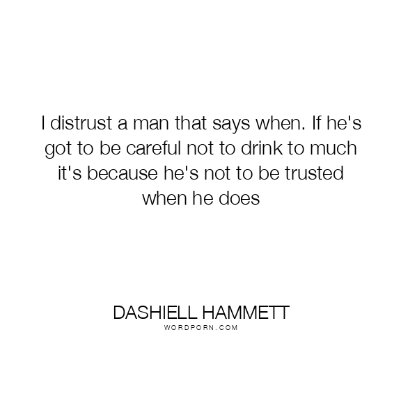 I distrust a man that says when. If he's got to be careful not to drink to much it's because he's not to be trusted when he does