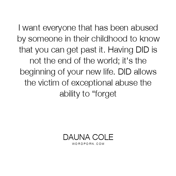 I want everyone that has been abused by someone in their childhood to know that you can get past it. Having DID is not the end of the world; it's the beginning of your new life. DID allows the victim of exceptional abuse the ability to “forget