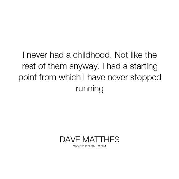 I never had a childhood. Not like the rest of them anyway. I had a starting point from which I have never stopped running