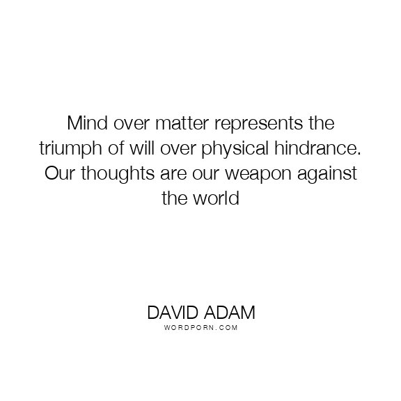 Mind over matter represents the triumph of will over physical hindrance. Our thoughts are our weapon against the world