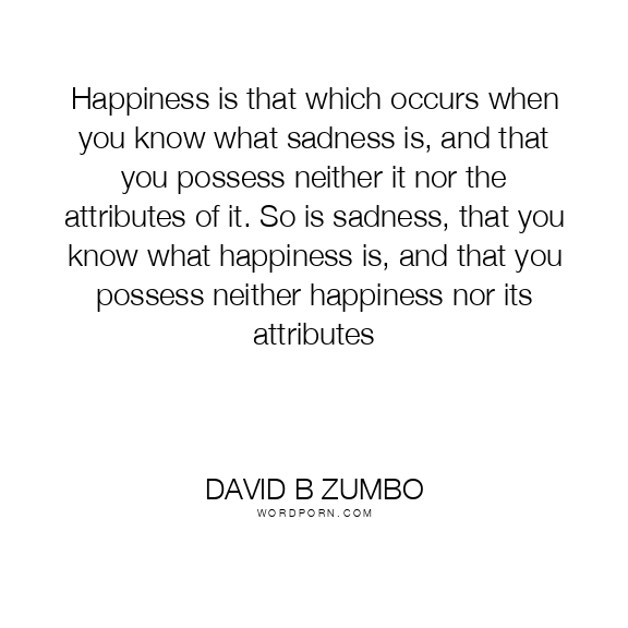Happiness is that which occurs when you know what sadness is, and that you possess neither it nor the attributes of it. So is sadness, that you know what happiness is, and that you possess neither happiness nor its attributes