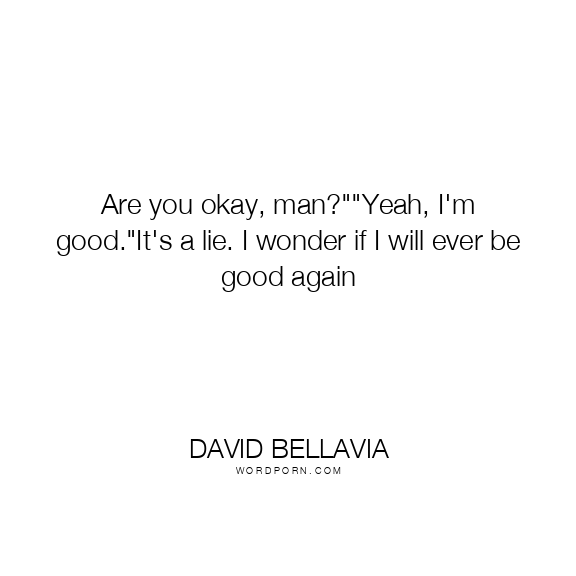 Are you okay, man?""Yeah, I'm good."It's a lie. I wonder if I will ever be good again