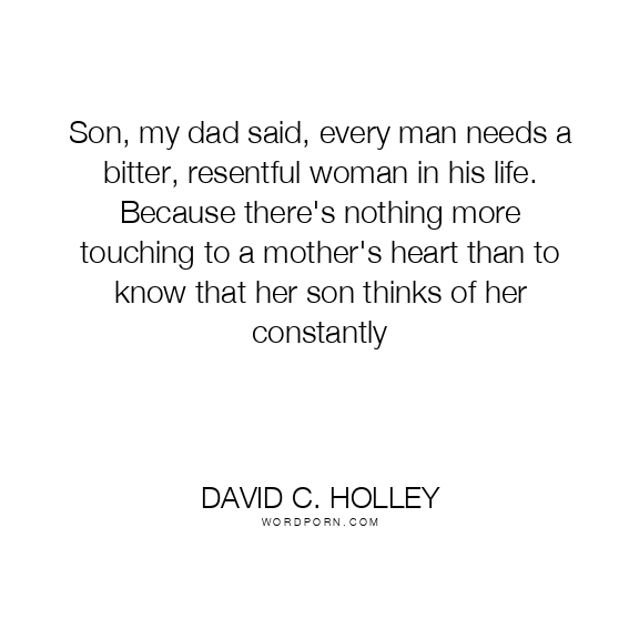 Son, my dad said, every man needs a bitter, resentful woman in his life. Because there's nothing more touching to a mother's heart than to know that her son thinks of her constantly