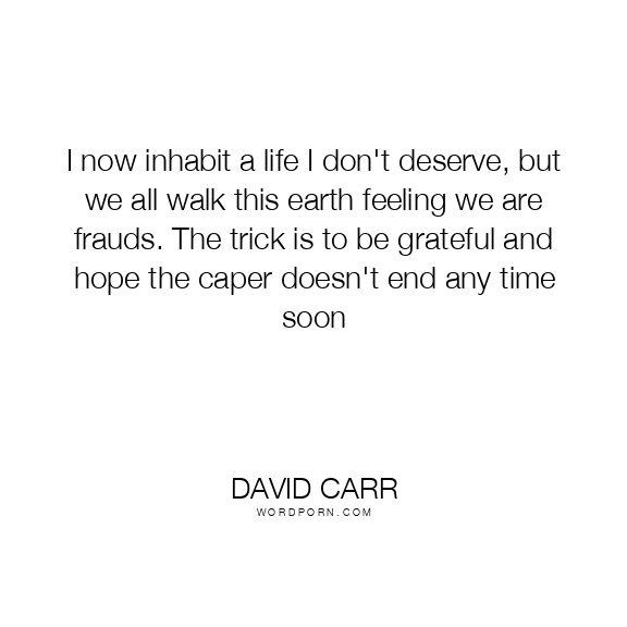 I now inhabit a life I don't deserve, but we all walk this earth feeling we are frauds. The trick is to be grateful and hope the caper doesn't end any time soon