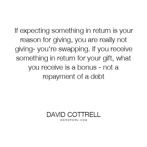 If expecting something in return is your reason for giving, you are really not giving- you're swapping. If you receive something in return for your gift, what you receive is a bonus - not a repayment of a debt