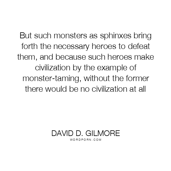 But such monsters as sphinxes bring forth the necessary heroes to defeat them, and because such heroes make civilization by the example of monster-taming, without the former there would be no civilization at all