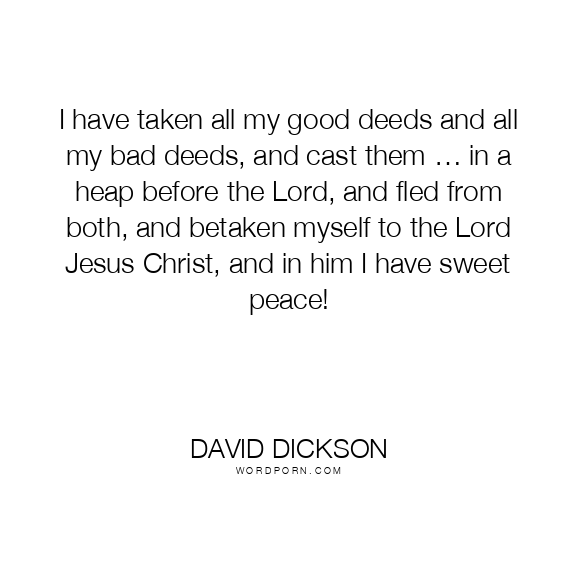 I have taken all my good deeds and all my bad deeds, and cast them … in a heap before the Lord, and fled from both, and betaken myself to the Lord Jesus Christ, and in him I have sweet peace!