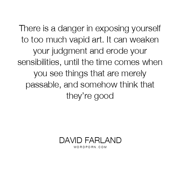 There is a danger in exposing yourself to too much vapid art. It can weaken your judgment and erode your sensibilities, until the time comes when you see things that are merely passable, and somehow think that they’re good