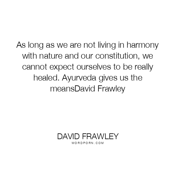 As long as we are not living in harmony with nature and our constitution, we cannot expect ourselves to be really healed. Ayurveda gives us the meansDavid Frawley