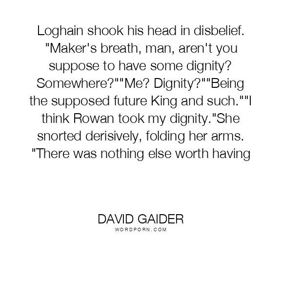 Loghain shook his head in disbelief. "Maker's breath, man, aren't you suppose to have some dignity? Somewhere?""Me? Dignity?""Being the supposed future King and such.""I think Rowan took my dignity."She snorted derisively, folding her arms. "There was nothing else worth having