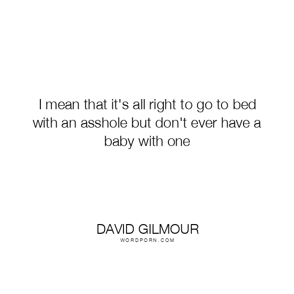 I mean that it's all right to go to bed with an asshole but don't ever have a baby with one