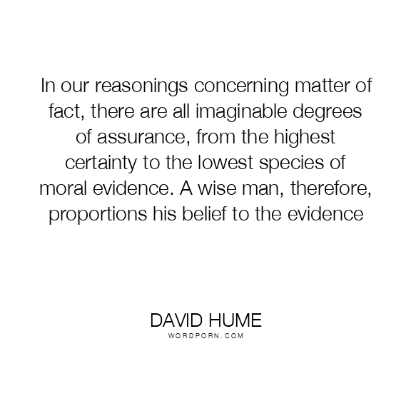 In our reasonings concerning matter of fact, there are all imaginable degrees of assurance, from the highest certainty to the lowest species of moral evidence. A wise man, therefore, proportions his belief to the evidence