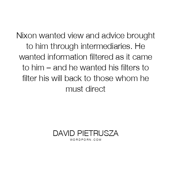 Nixon wanted view and advice brought to him through intermediaries. He wanted information filtered as it came to him – and he wanted his filters to filter his will back to those whom he must direct