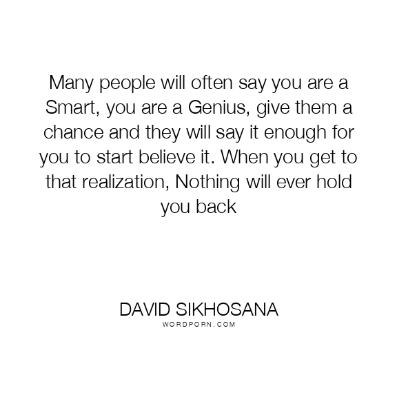 Many people will often say you are a Smart, you are a Genius, give them a chance and they will say it enough for you to start believe it. When you get to that realization, Nothing will ever hold you back
