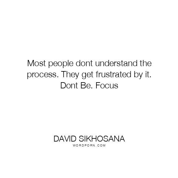 Most people dont understand the process. They get frustrated by it. Dont Be. Focus