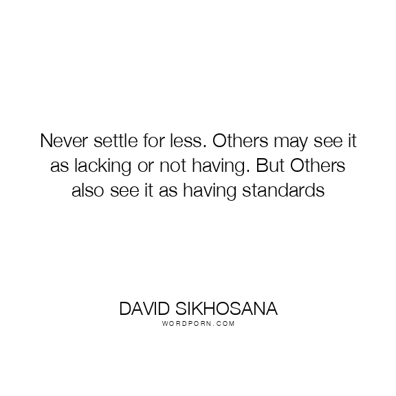 Never settle for less. Others may see it as lacking or not having. But Others also see it as having standards